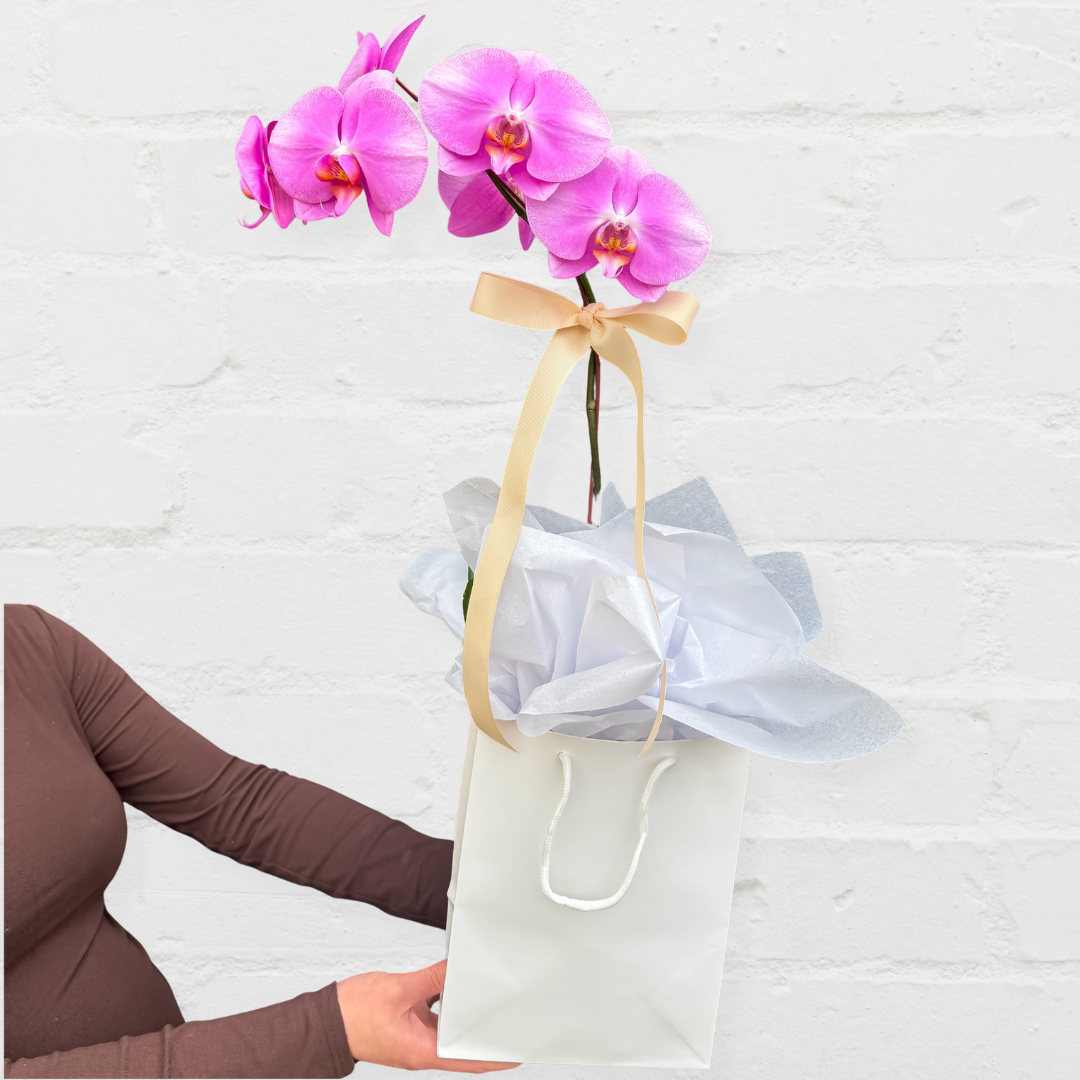 Phalaenopsis orchids are a flowering plant with blooms lasting at least 4 weeks! keep them happy with a well-lit environment without the extremes of heat and cold and very minimal water.