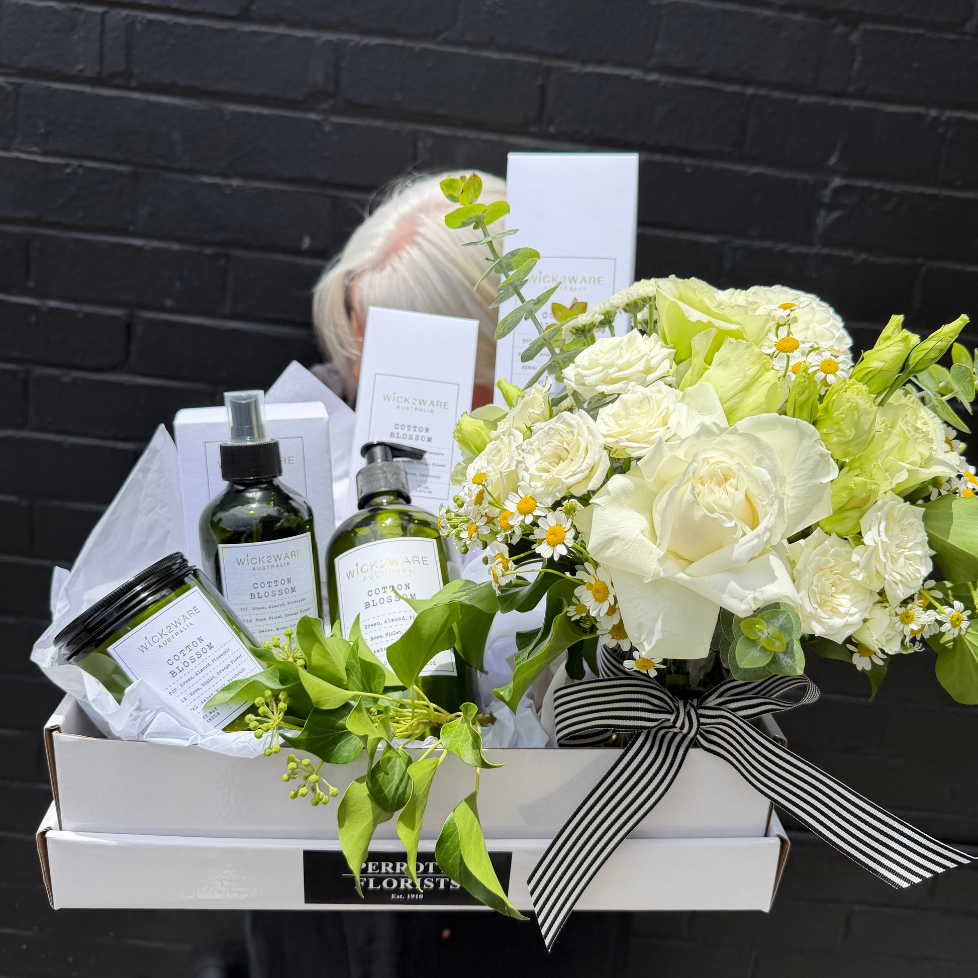 Bring beauty and calm together with our Perrotts Peaceful Hamper, combining fresh florals with four Wick2Ware home fragrance essentials for everyday indulgence. A seasonal floral arrangement is styled alongside a long-lasting reed diffuser, a small scented candle, a refreshing room spray, and a nourishing hand soap to instantly elevate any space. Designed as a complete floral and fragrance experience, it’s the perfect gift for birthdays, housewarmings, thank you gestures or just because – a truly soothing treat for the senses.